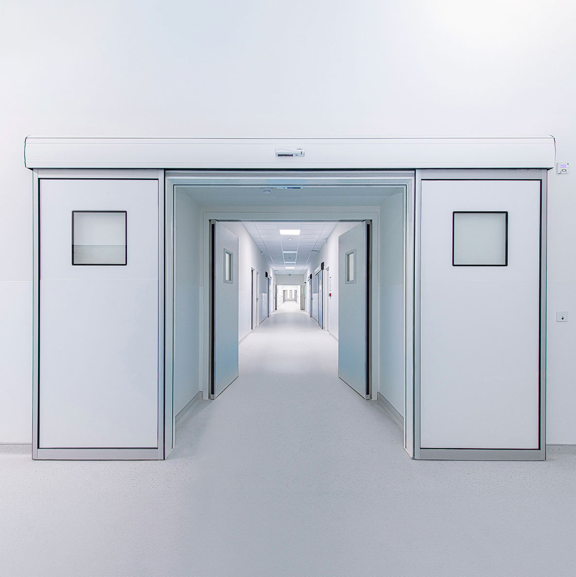 Creating an air-controlled seal between spaces and ensuring optimal conditions; automatic hermetically sealed doors are critical in hospitals, laboratories, cleanrooms, pharmaceutical, and manufacturing facilities, enhancing hygiene, pressure control, and environmental separation.